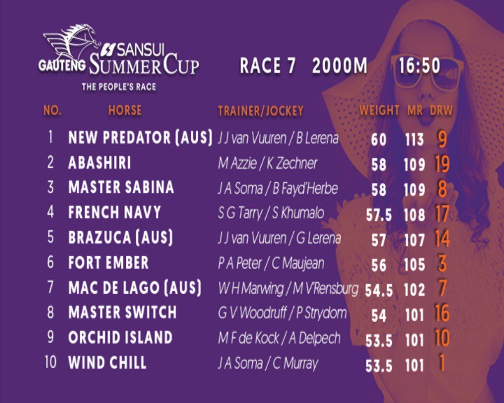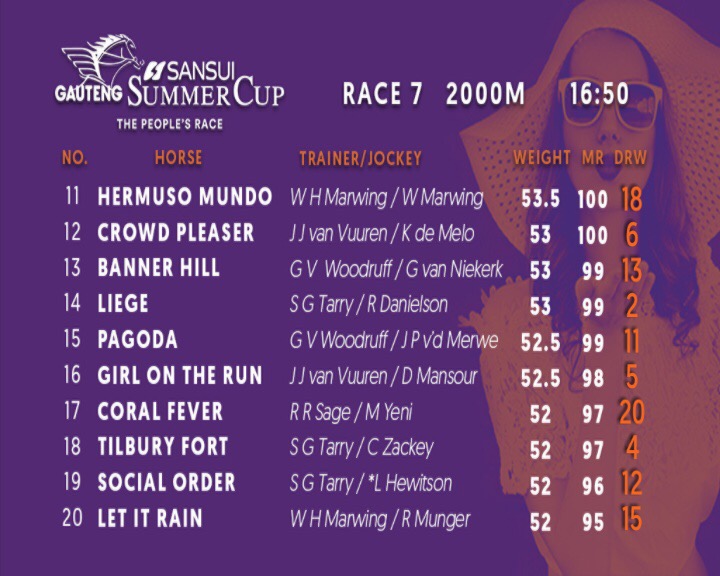 Poor field for that stake. The bottom line is that this is Gautengs top of the A division race. The absence of WC runners is a real shame.