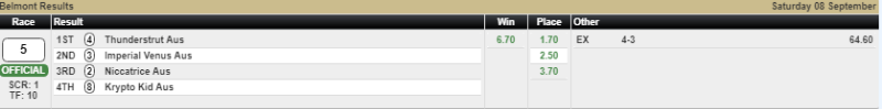 Good Morning; can somebody please assist with the payouts displayed on Tabonline; it is ALWAYS below the payouts displayed on the official TAB AU website. It's seems as if somebody's doing something strange and nobodys talking...Belmont 5 Exacta this morning...