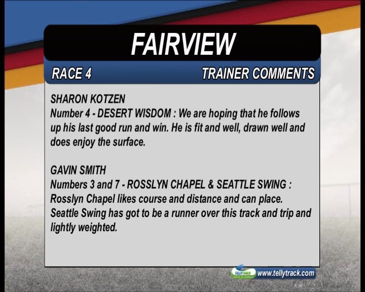 Race 4: Desert Wisdom won a nice race last time and he again has a good winning chance. Frikkie , Kensington Oval and Seattle Swing are others with chances.