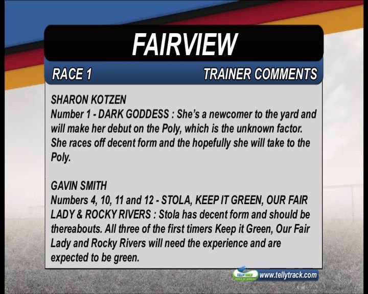 Race 1: Dark Goddess has been running against stronger in CT, and if she handles the poly should have a good winning chance. Stola and Storeyfields look the main dangers