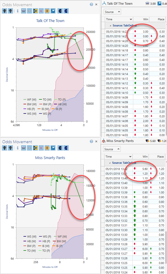 Did anyone notice the drastic change of tote prices after the race was run in.kenilworth for race 4&5 .