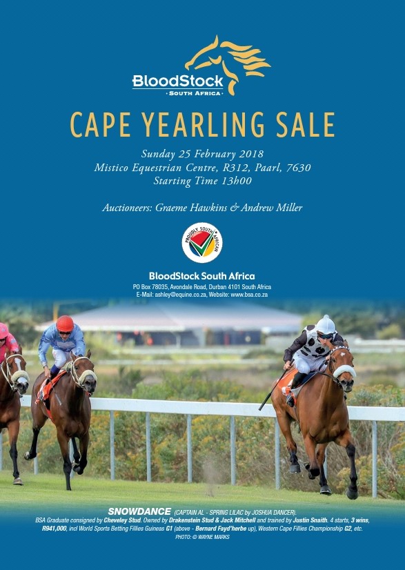 The Cape Yearling Sale will take place at the Mistico Equestrian Centre and the catalogue can be viewed online at www.bsa.co.za