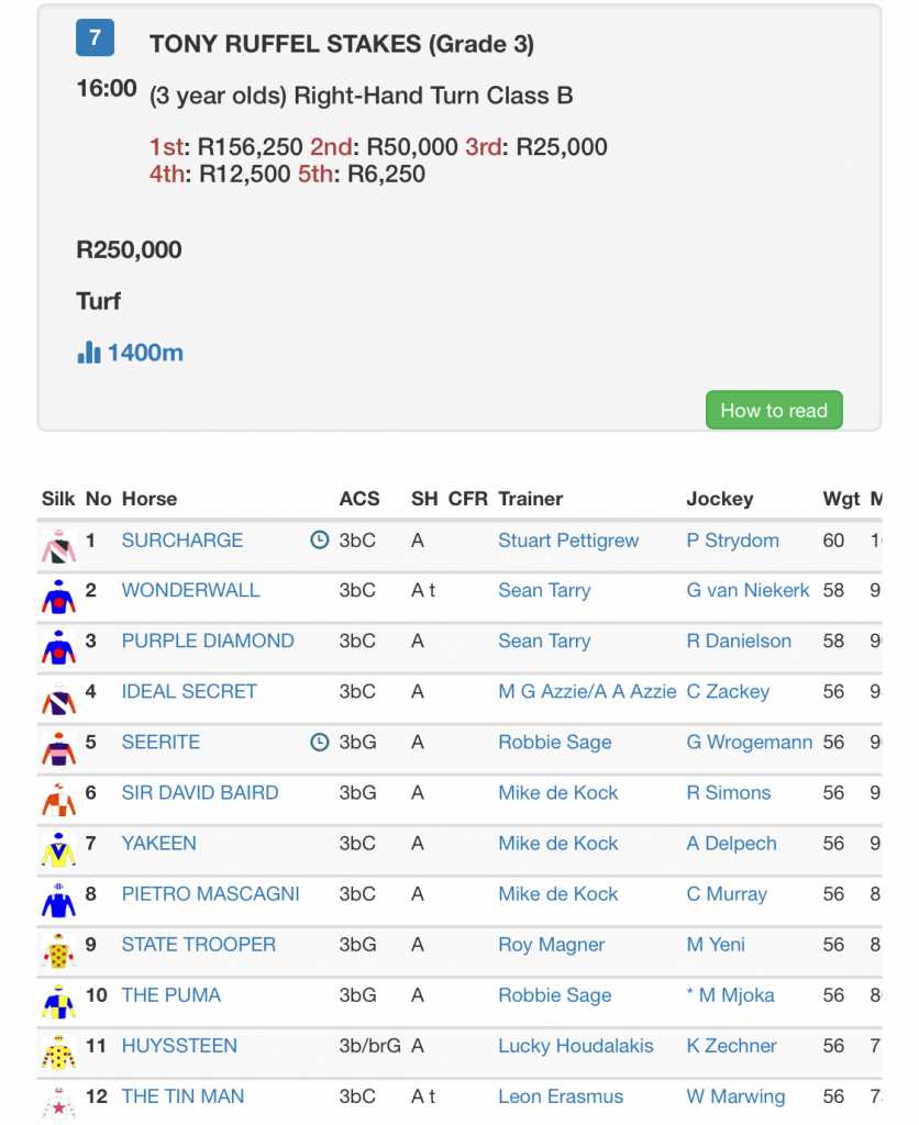 Re: Turffontein Saturday-Featuring the Tony Ruffel