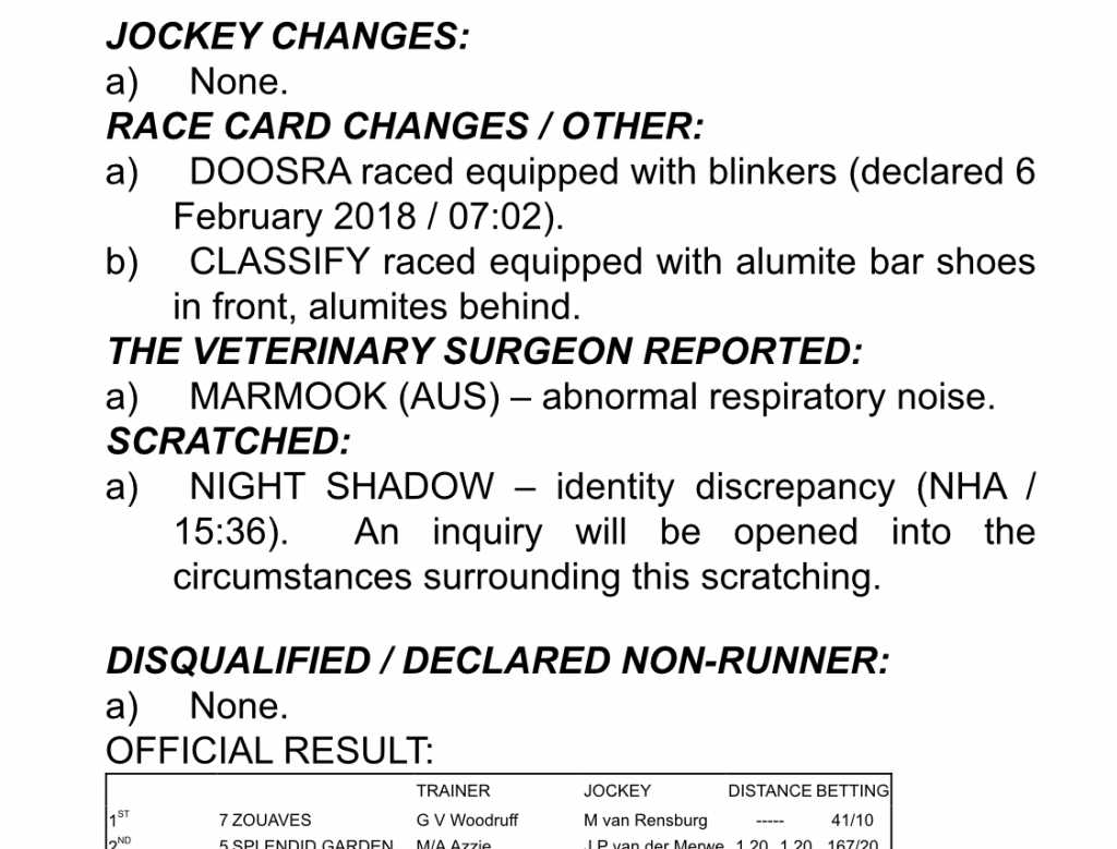 Re: Wrong horse allowed to run race 3 at the Vaal