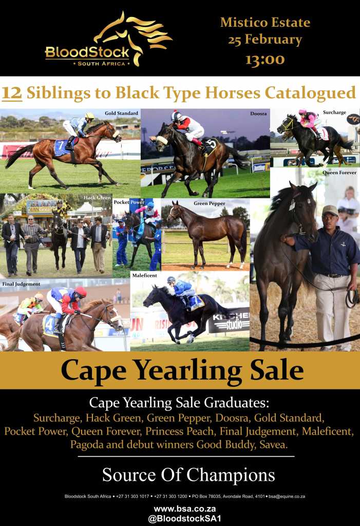 The catalogue for the 2018 Cape Yearling Sale can be viewed at www.bsa.co.za