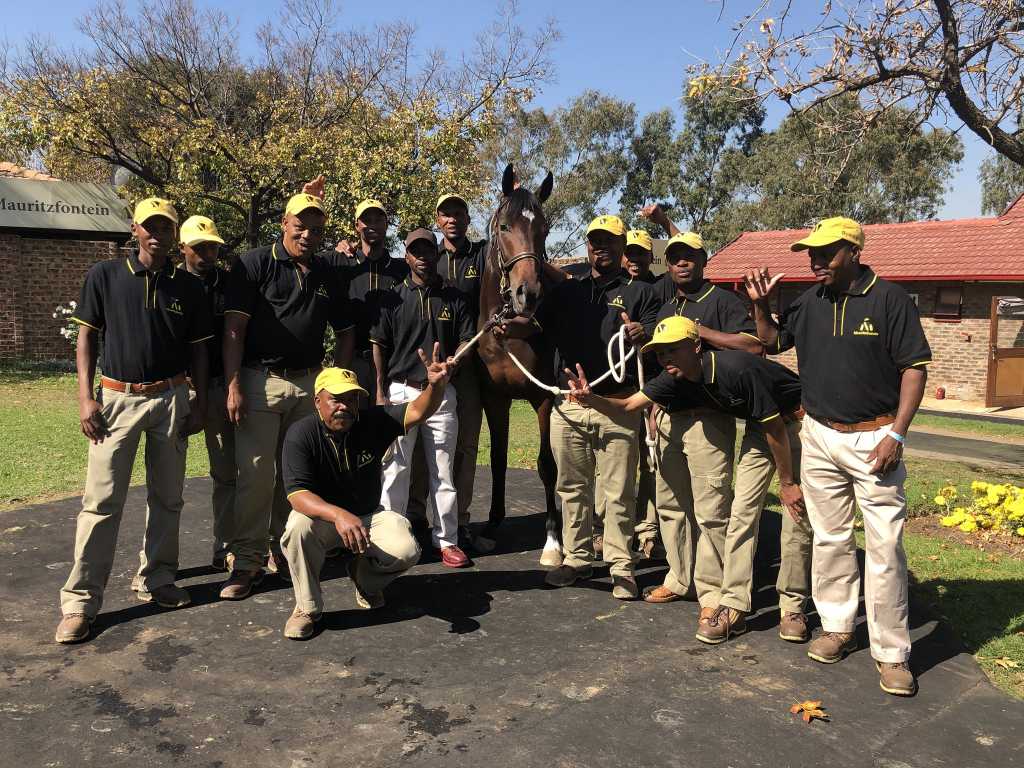 The happiest proudest team. Mauritzfontein grooms with their Dynasty colt Lot 202, who was bought by Form Bloodstock for MDK racing.