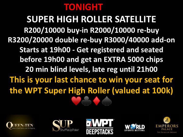 Emperors Palace is a Peermont Resort. For more information visit www.shuffleuppoker.com , www.emperorspalace.com or call 011 928 1000. Connect with us on Facebook or follow us o
