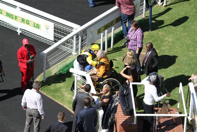 Mrs O greeting Delpech back after winning the Pretty Polly on Franny.. Remember the horse?