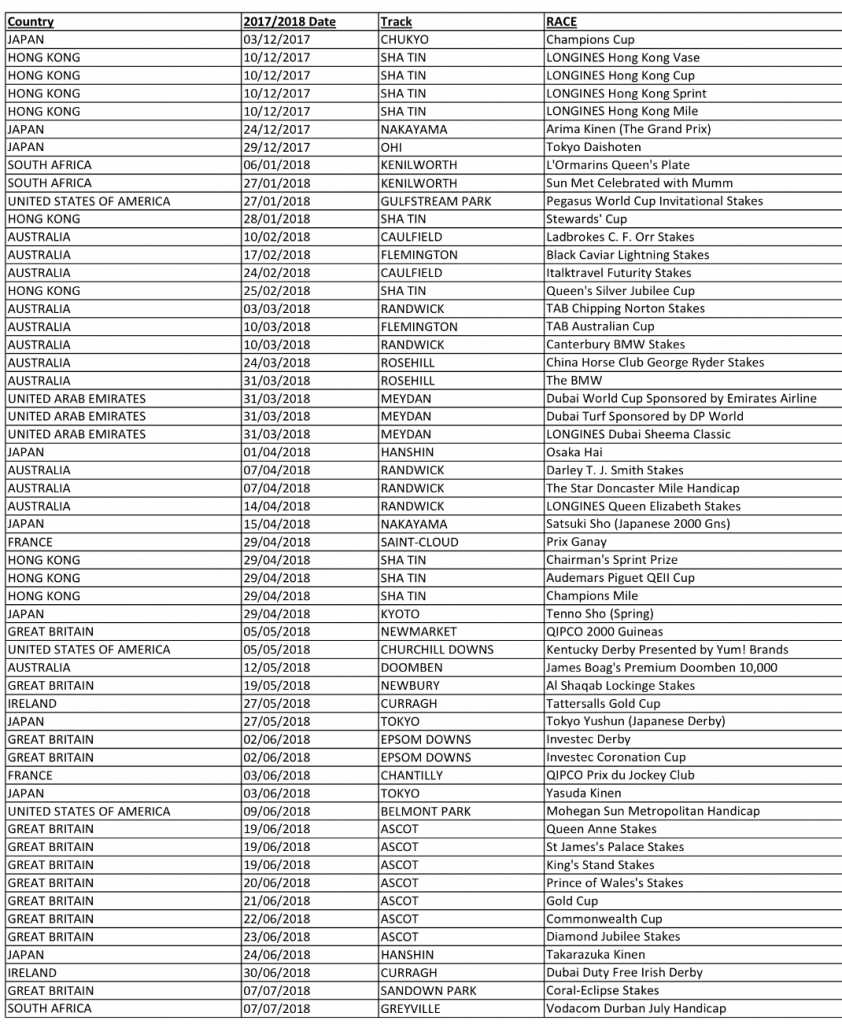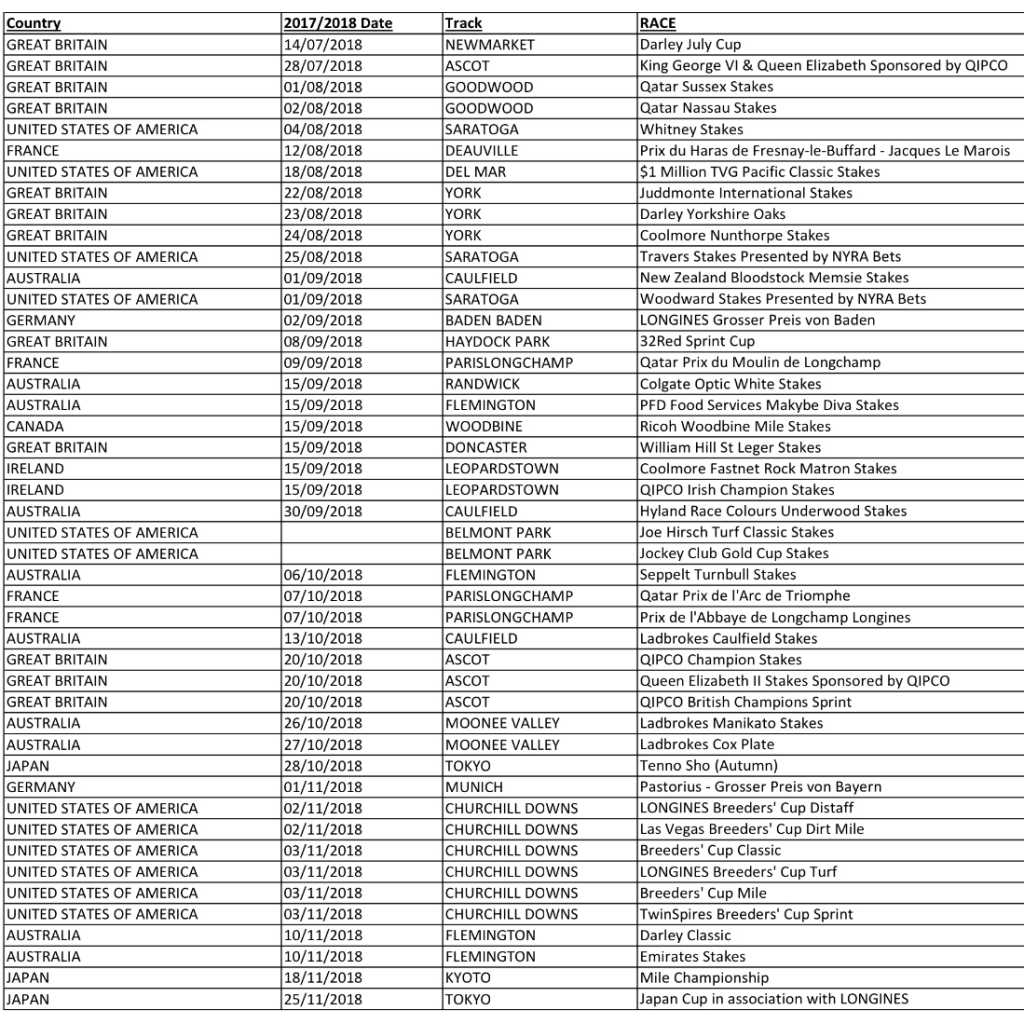 These races are ranked as the top 100 Gr1 races in World racing and used to decide the top Jockey Bt Longines