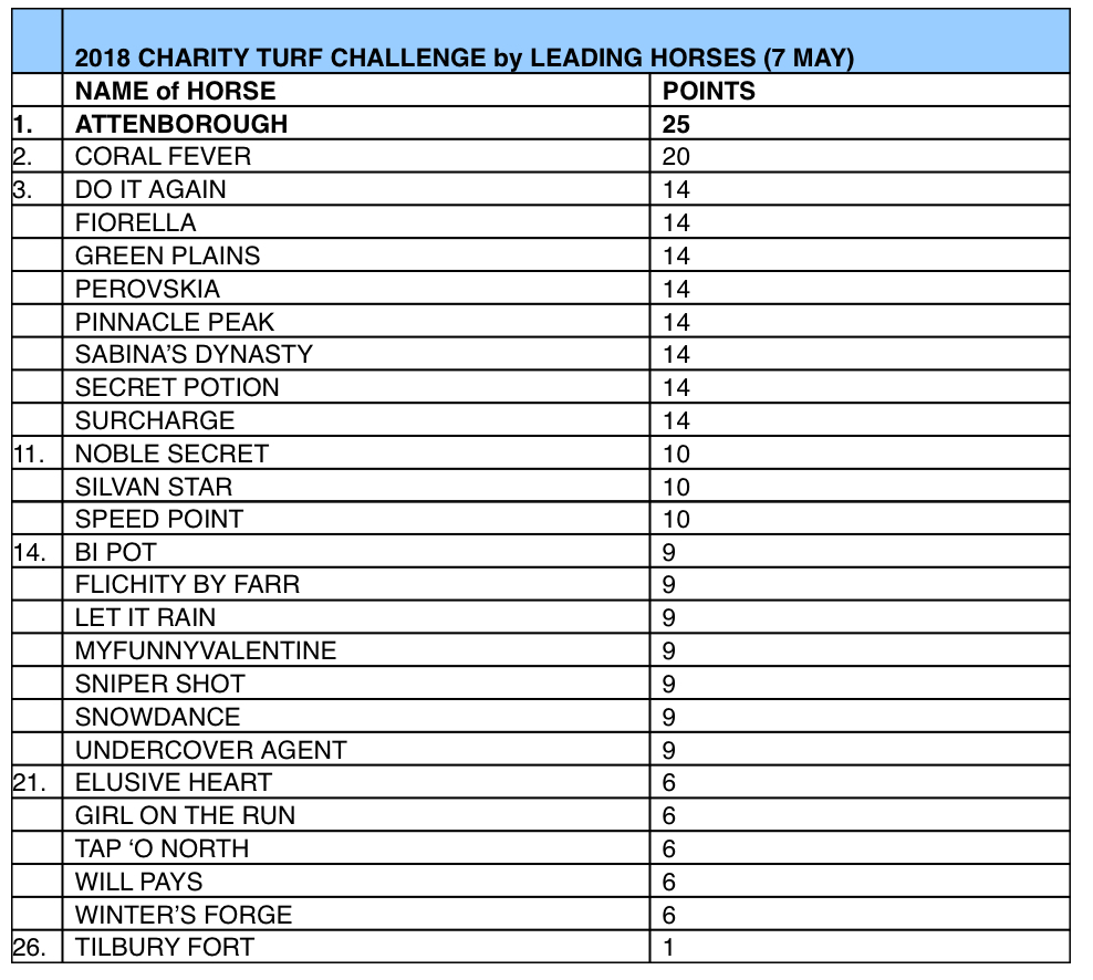 With numerous Graded races having taken place over the weekend, there are no fewer than 26 individual point scorers, top honours going to Attenborough from the stable of Joey Ramsden who won the Gr.1 Computaform Sprint in dominant fashion. Having paid over R15 on the Tote, the four year old son of Western Winter picked up the long shot bonus of 5 points to take his total to 25 points and leads the competition by 5 points from the well supported Coral Fever who got the better of Abashiri after a long duel in the Gr.1 Premier’s Champions Challenge.