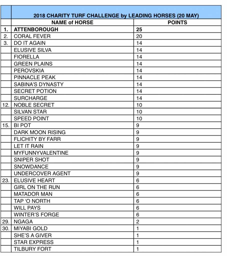 Horse9: TAP O' NOTH Points: 16