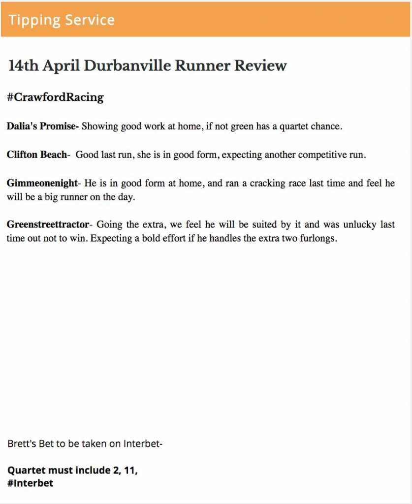 There are no certainties in horseracing; hope you go fetch though...