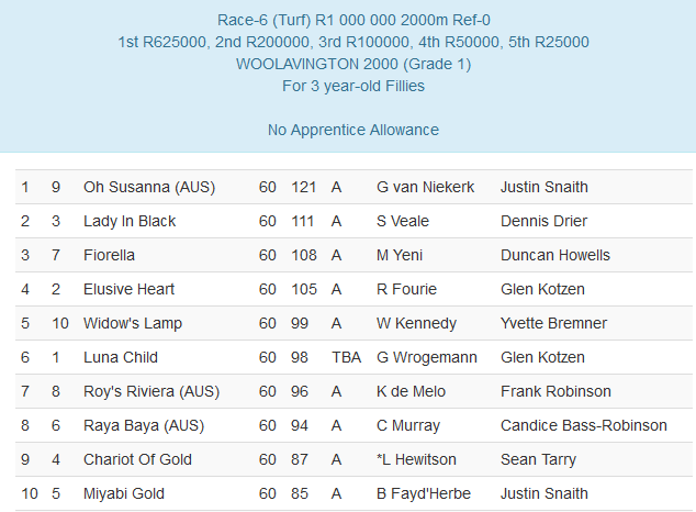 9 6 Made To Conquer 56.5 94 4 Justin Snaith R Fourie