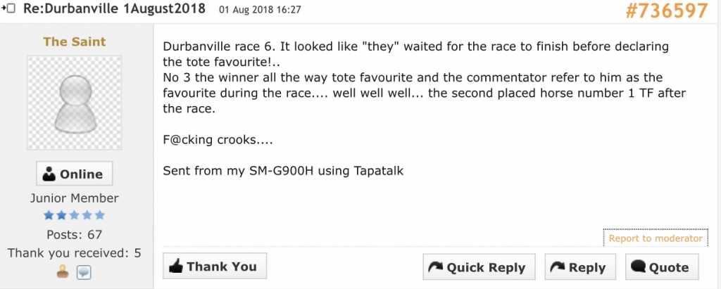 I myself, am not a tote punter, so i am not talking from any bias opinion, i just believe the playing field should be free and fair for all, even if i am not part of it, which is why i want to raise this topic, open it up for discussion, and i will slowly but surely start investigating this further on my end, and prove with hard evidence that there is manipulation going on.