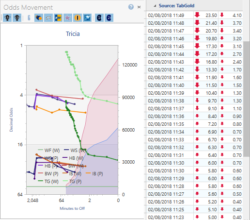 It looks normal to me, odds lengthening steadily to come in line with what the other operators are offering. The pool (red shading) does its usual 25% jump up in the last two minutes, but nothing looks too irregular.