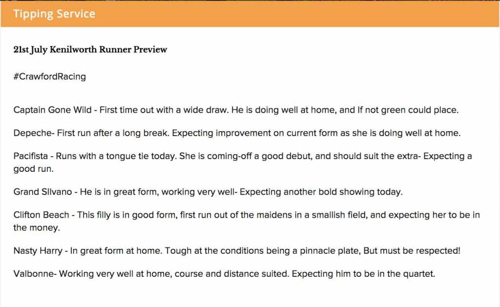 Race 3: Captain Tortuga has been expensive to follow but should get it right today. I will throw in Sacred Night for the upset in a cover perm.