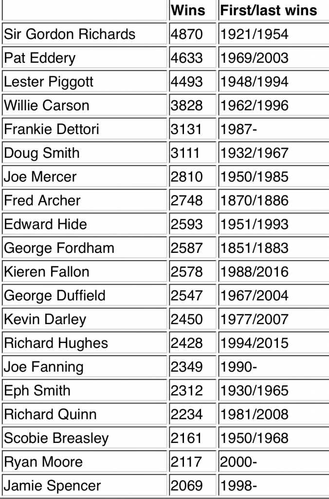 I think on stakes won or at least meaningful Gr1 raves, Moore is still a champion! Surprised to see Joe Fanning up there, always liked him but he is seriously underrated.