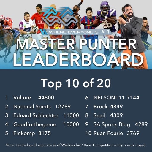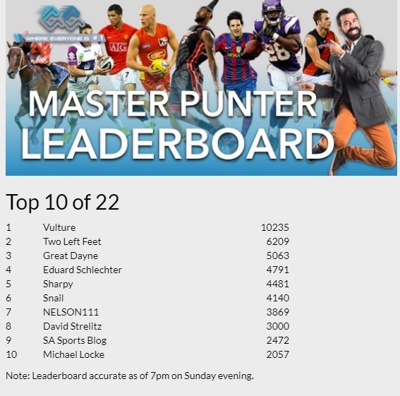 The leaderboard for the Master Punter Contest is live.