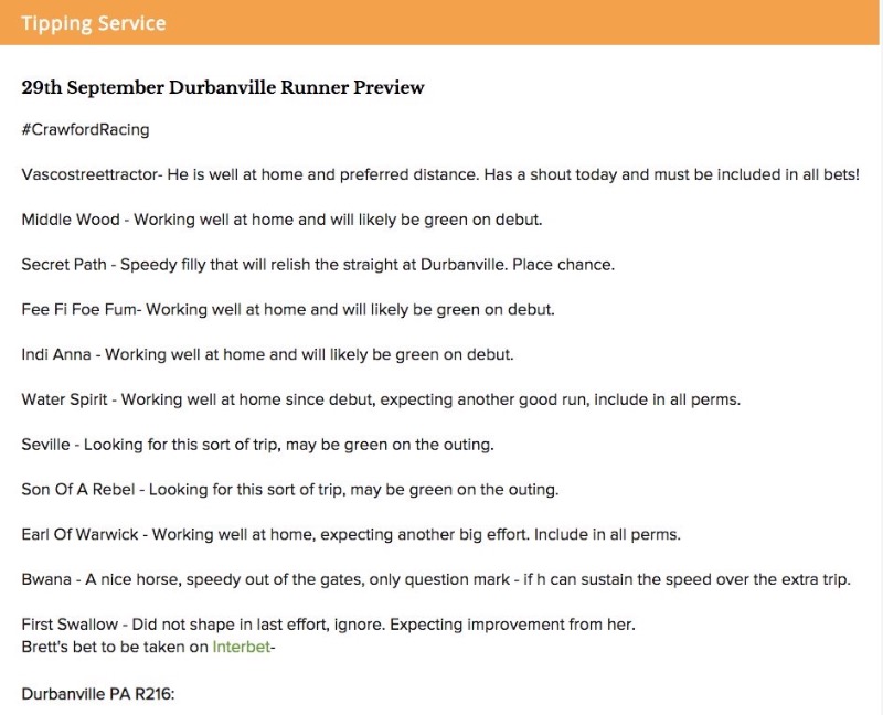 Re: Durbanville Saturday 29/09/2018