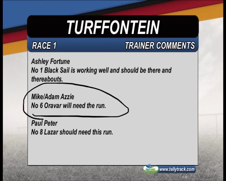 Wasn't meaning you Bob . The trainer could just say no comment as many others do. Or maybe even " the horse can win but might be green or need it,"