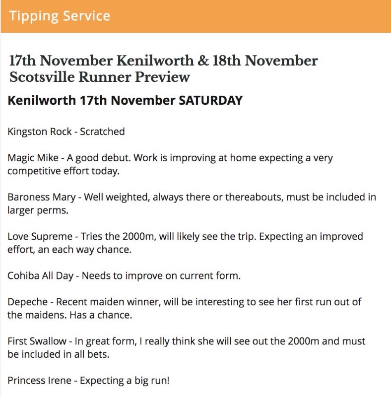 I have Zanadu competing in the 17:25 over 2000m @ Kenilworth. Here’s what you need to know :