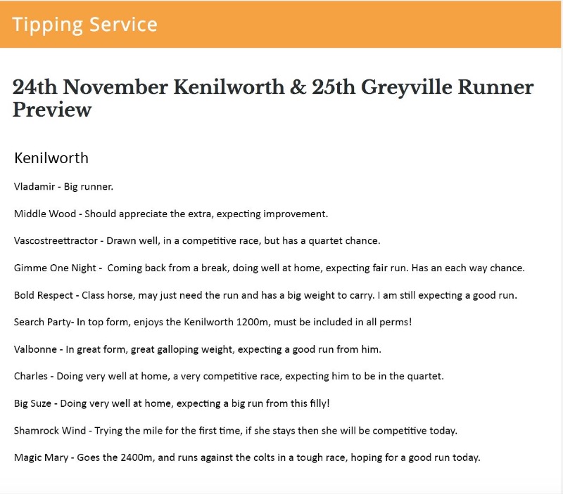 Made to conquer should win this I reckon but I love the string of Elusive Silva