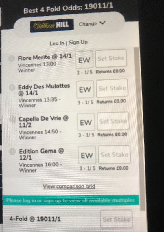 It has to be with William Hills,they are making Rick after Rick with there odds in France.