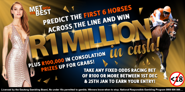 World Sports Betting`s R1m Met Predictor is open for entries and this year you could stand a chance to win a massive R 1 MILLION in CASH by predicting the first 6 horses across the line on 26 Jan.
