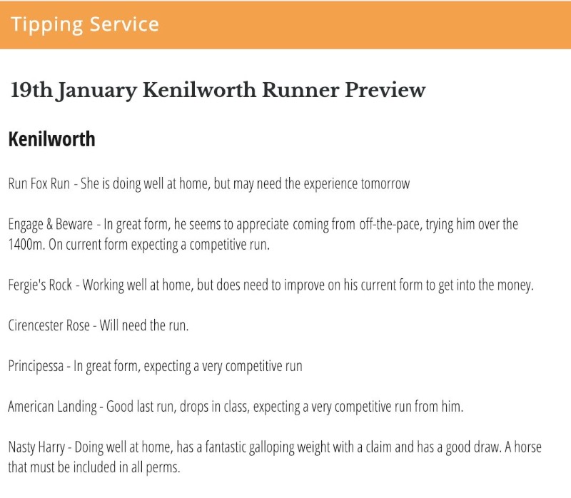 Re: Kenilworth, Saturday 19/01