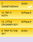 Nr 7 and 10 the standouts but i thrown in a absolute dog in the betting in nr 16 (40/1) to upset the places .