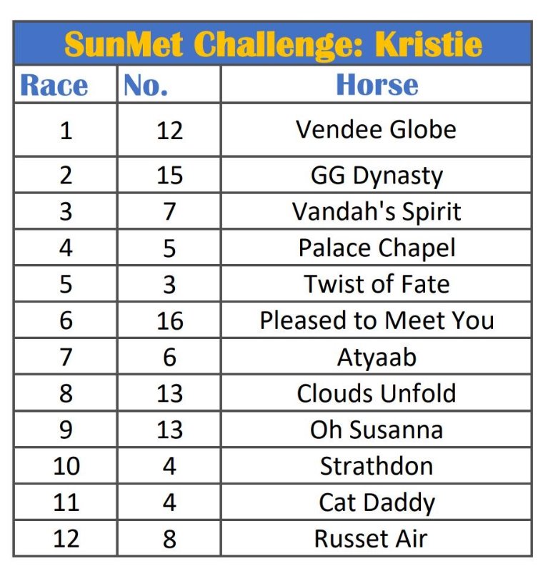 Race 7: # 20 Helen’s Ideal (double)