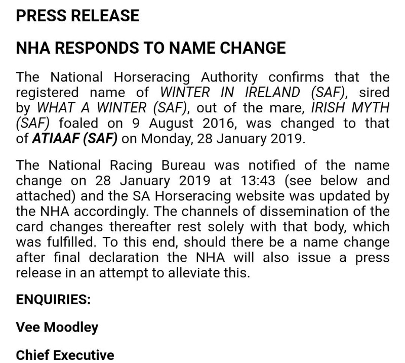 After posting yesterday I specifically listened to the in studio presenter. Just before he crossed over to the race commentator, he(in studio) still called the horse Winter in Ireland, now if he hasn't been given the correct info, how has the punter who has no access to a forum like this(or SA Horseracing) a hope in hell of receiving the correct info.