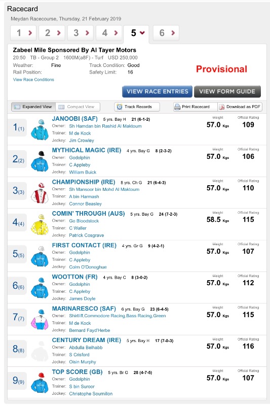 Hi guys. Posting here after ages ,just need a 2nd opinion.... Mareneresco first run at meydan.was it just me or was this horse given an extremely relaxed ride yet still looked dangerous turning for home.finished some way back.should get at least 10/1 next run.will need to win in order to have a chance at the main race on Dubai world cup night....any thoughts from the more astute punter?