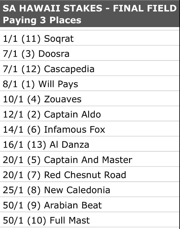 Caveat to ante/post punters - Square Rat is also nominated for the Hawaii.