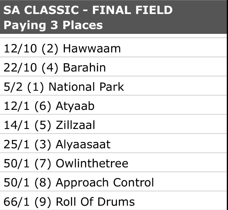 The Fillies Classic is very interesting, Nafaayes best in, but may be vulnerable over the 1800, I'm hoping Second Request will at least get to the start this time ....