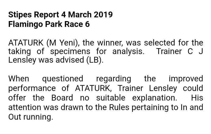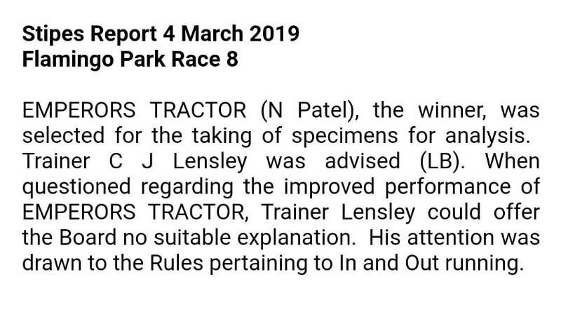 Just imagine they actually enforce the In and Out running rule,there will probably be too many horses banned to stage a race meeting.