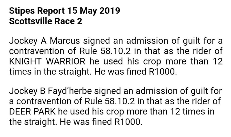 by the jockeys in South Africa