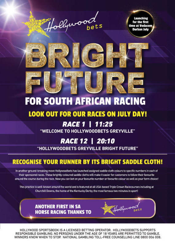 6 years 9 months agoDurban – In another ground-breaking move, Greyville and Scottsville Racecourse naming-rights holder, Hollywoodbets has launched assigned saddle cloth colours to specific numbers in each of their sponsored races. They will be used for the first time in the 1st and 12th on Vodacom Durban July day at Hollywoodbets Greyville on Saturday 6th July 2019.