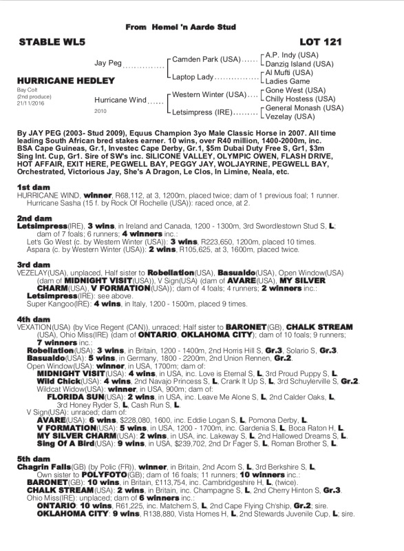 Brian Wiid says he has a nice Jay Peg 2yo that’s ready to run.