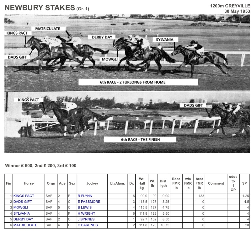 By the way, there was a filly called, Kings Pact, that won the Clairwood Winter Handicap as a two year old. She had an impeccable two year old record. This race is now known as the Champions Cup which will be on Saturday.