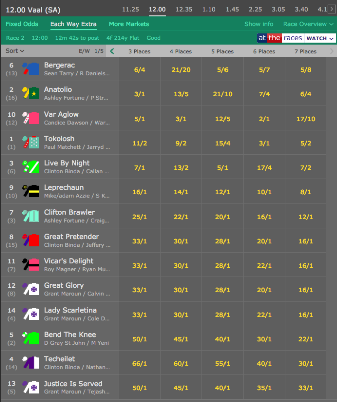 I can't comment, as I seldom indulge at Flamingo or Fairview - but the only real upset so far today imo was Olofberg - but a good way to structure a P6 or JP at the Vaal Classic track, is to include the runner in pole position as your first pick (for races around the turn mainly - although the inside draw down the straight today helped as well) - then look at the other factors ... of which odds offered should be the least contributing factor ..... after the overall form of the horse, trainer and jockey form etc