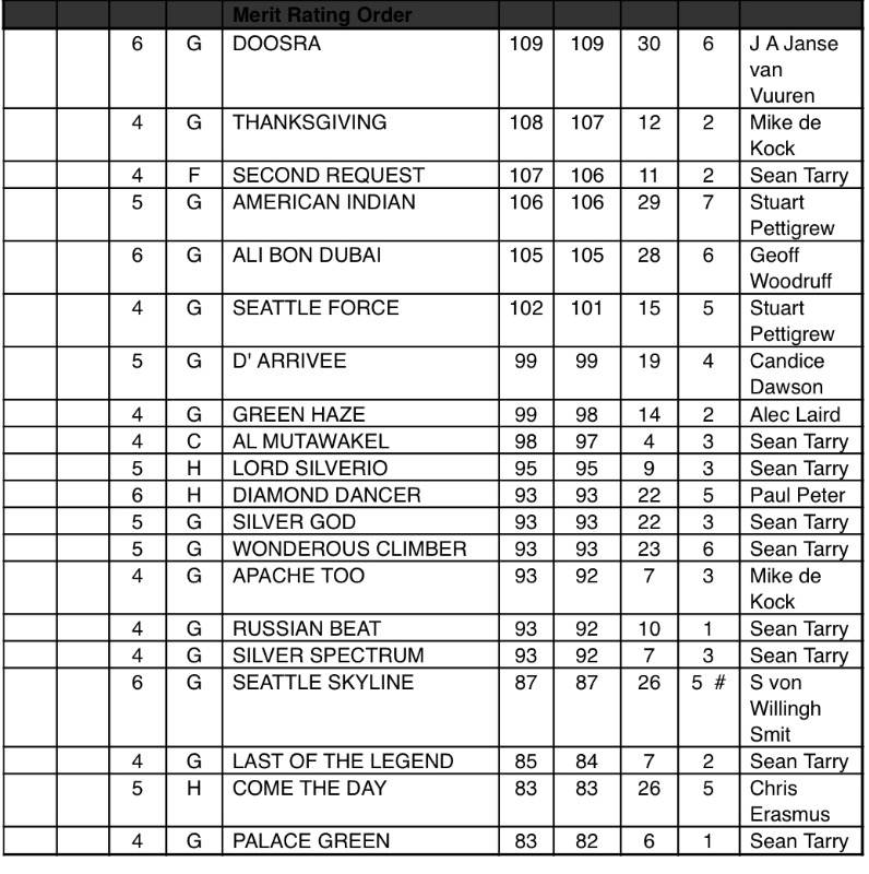 • Like A Panther drops to 110 from 112 due to a Lay-off Allowance.