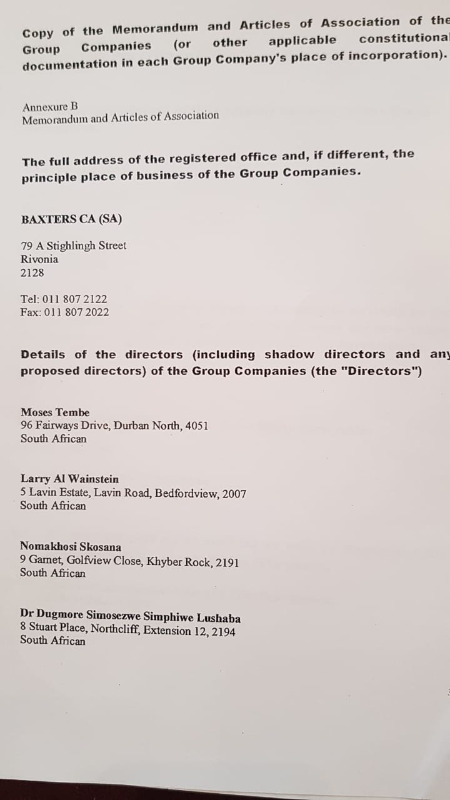 .....the other 2 names are even bigger hitters.....the lady is the ex-Corporate governance director of Vodacom but maybe a typo in the name but the address fits and Dr Dugmore is the chairman of SA Post office and a very high up government official.....