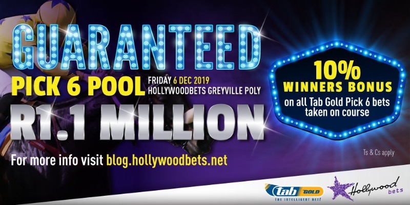 The Pick 6 pool for Hollywoodbets Greyville tonight is guaranteed to be at least R1,1m and on Sunday when racing returns to Hollywoodbets Scottsville the minimum pool will be R1,6m! Make sure you take your bets on course with TabGold to qualify for your added 10% bonus on your winning Pick 6 bet.