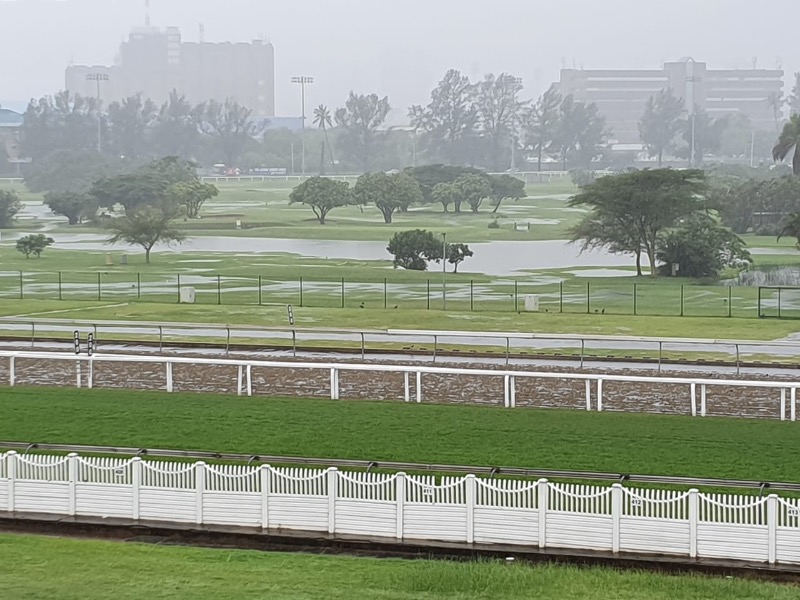 Greyville has received 273mm of rain over the past few weeks & a further 52mm recorded over-night. Forecast is for further downpours throughout the day. A decision has been taken to abandon the meeting.