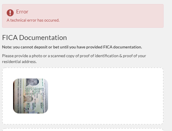 I have tried to register an account but when trying to upload FICA docs it keeps complaining about 'A technical error'