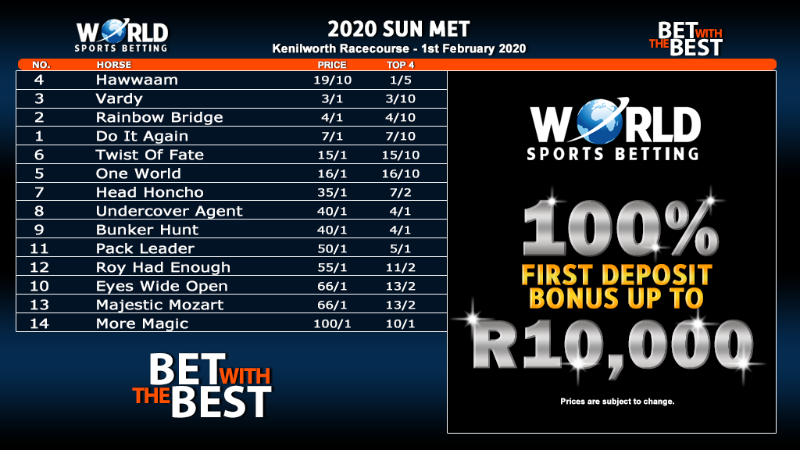 All of Hawwaam, Do it Again, Rainbow Bridge, Vardy,, One World, Twist of Fate and maybe Head Honcho are good enough on their day at level weights. On his 3yo form, Eyes Wide Open, and perhaps a horse like Bunker Hunt could still have enough improvement in him.