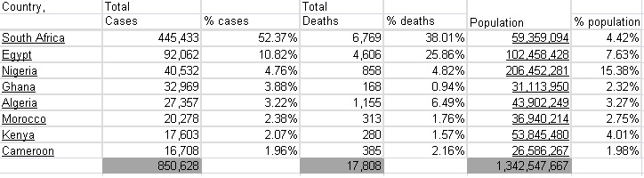 Deaths per 1 million citizens we are 40th. who is fooling who. excess recorded deaths per week last 90 days has been in the region of 25000 people. that seems a more realistic case number. EC and KZN figures are nonsense here
