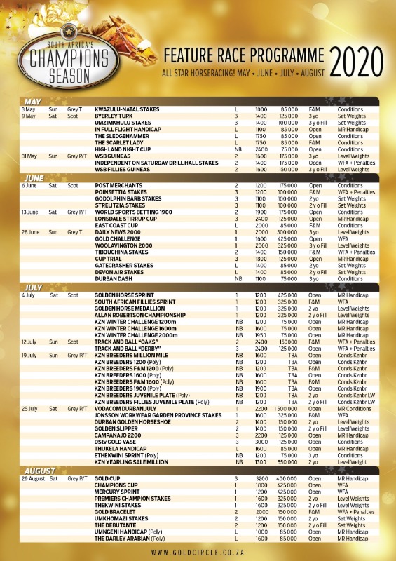 The complete Feature Race programme for Champions Season 2020 is available on the Gold Circle website www.goldcircle.co.za