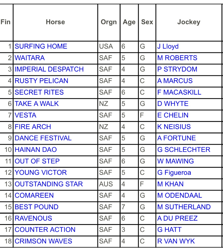 Surfing Home and Jeff LLoyd leading home Waitara (Muis Roberts), Imperial Despatch (Piere Strydom) and Rusty Pelican(Anton Marcus).